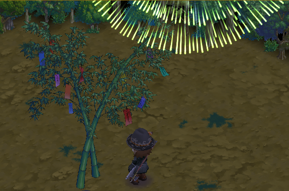 短冊に願い事を書いて笹に飾ると、花火が上がっている間にランダムで読み上げられます。