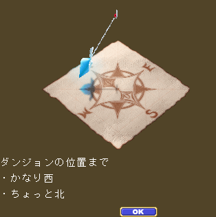 フィールドで使用すると→のように、どの方角にダンジョンがあるかが表示されます。